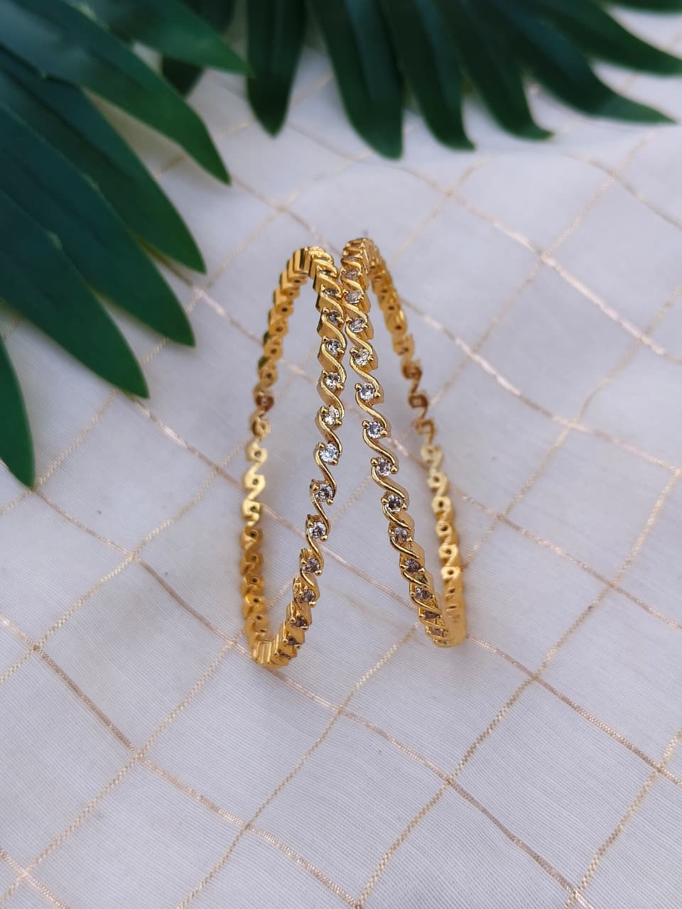 Elevate your everyday elegance with our anti-tarnish bangles, crafted to maintain their lustrous finish through daily wear. Each piece features carefully selected ad stones that catch light beautifully, adding sophistication to any occasion. Designed for those who refuse to compromise between quality and value, these bangles offer premium craftsmanship at an accessible price point. The anti-tarnish coating ensures longevity, protecting your investment while keeping your wrists adorned in timeless style. Perfect for layering or wearing solo, these versatile pieces transition seamlessly from casual to formal settings.