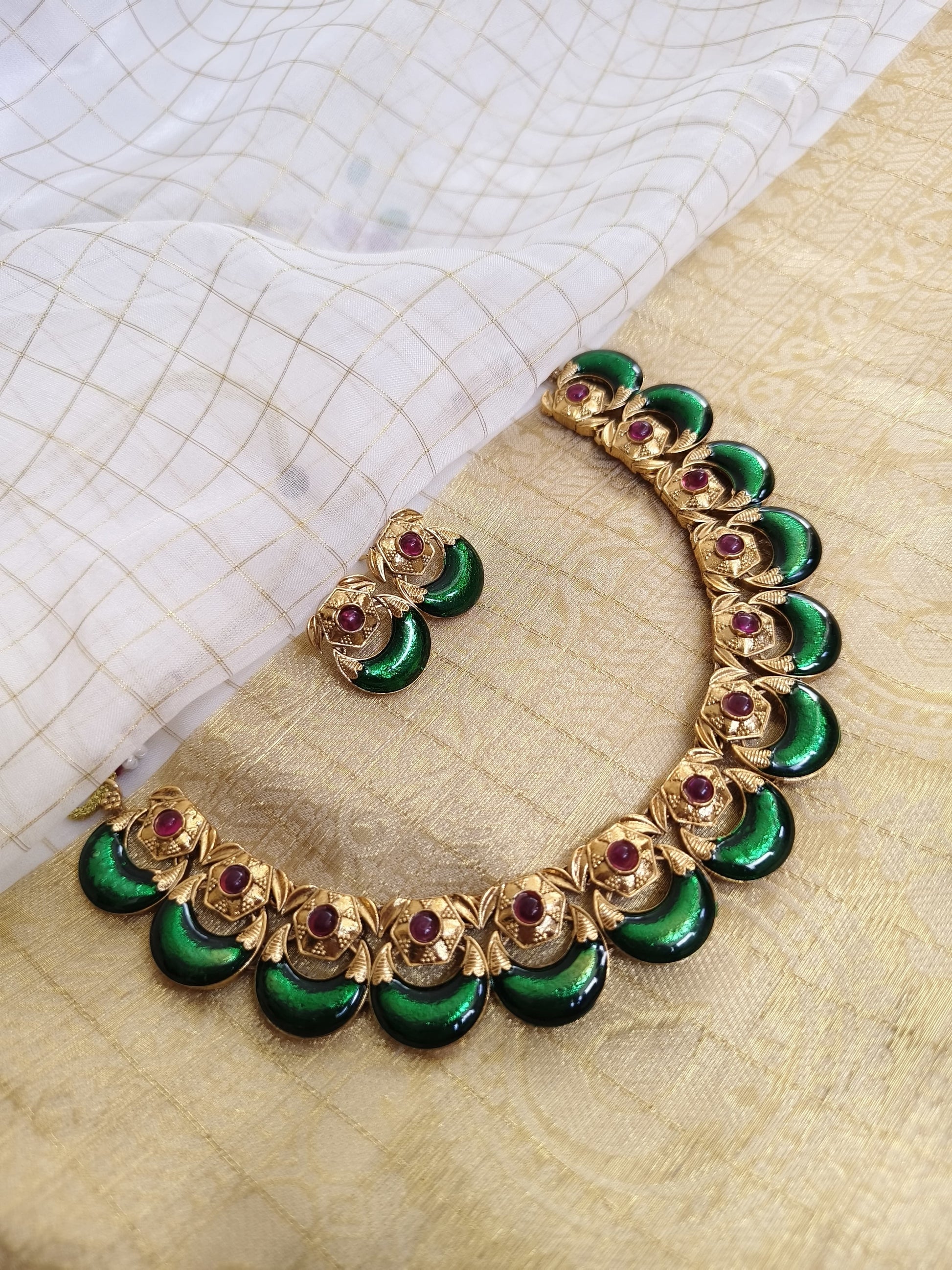 Celebrate Onam with the elegant Pushpum Necklace NNB49, designed to complement traditional attire beautifully. Its delicate craftsmanship and floral-inspired design add a graceful touch to your festive look, making every moment special. Perfect for embracing the spirit of Onam with style and warmth.