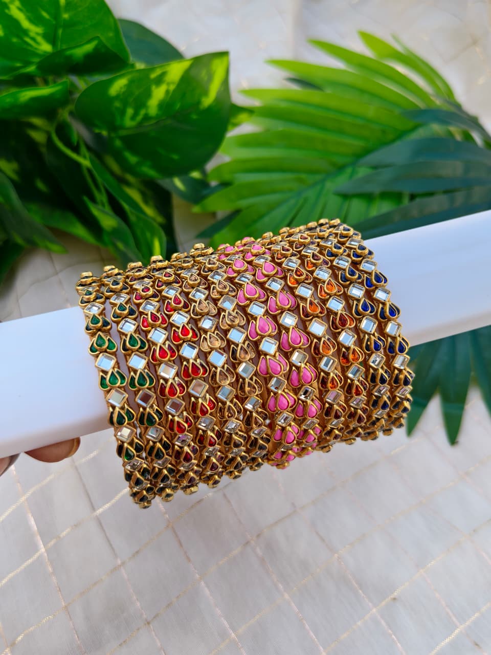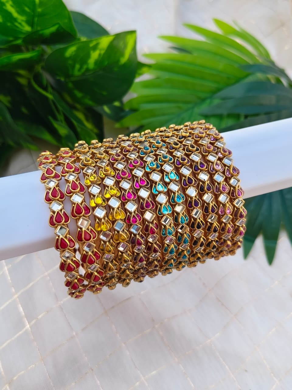 Elevate your style with the STC 48 Combo Set, featuring silk thread bangles embellished with delicate with 12 colours silk thread bangles. Each set is expertly handcrafted, ensuring impeccable quality and attention to detail. Customize the colors to perfectly match your unique taste. Please allow 7 to 12 days for production. For orders or inquiries, connect with us on WhatsApp at https://wa.me/+919566639644 24 bangles