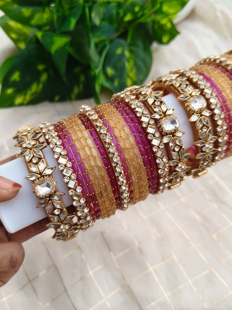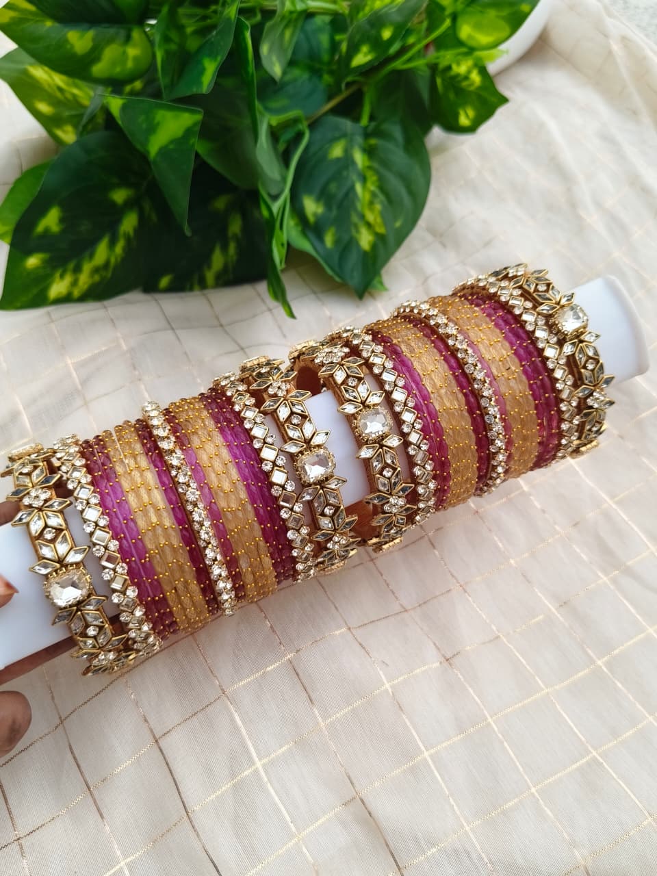Experience the elegance of silk thread bangles adorned with glass accents, crafted exactly as shown in the picture for 2 hands . Enjoy the option to customize colors to suit your personal style. Each order is carefully handmade, with a production time of 7 to 12 days to ensure premium quality. For orders and assistance, connect with us on WhatsApp at https://wa.me/+919566639644