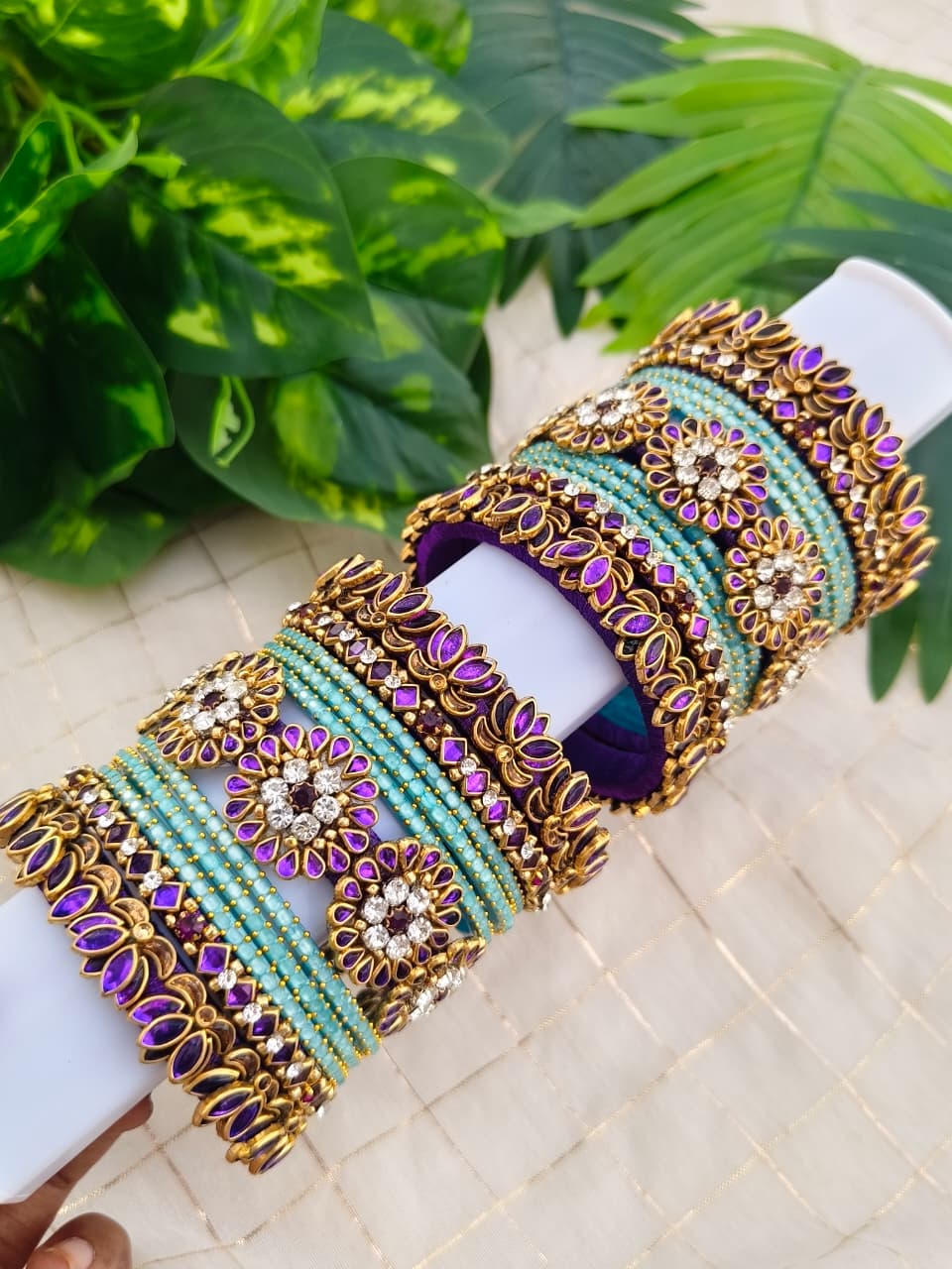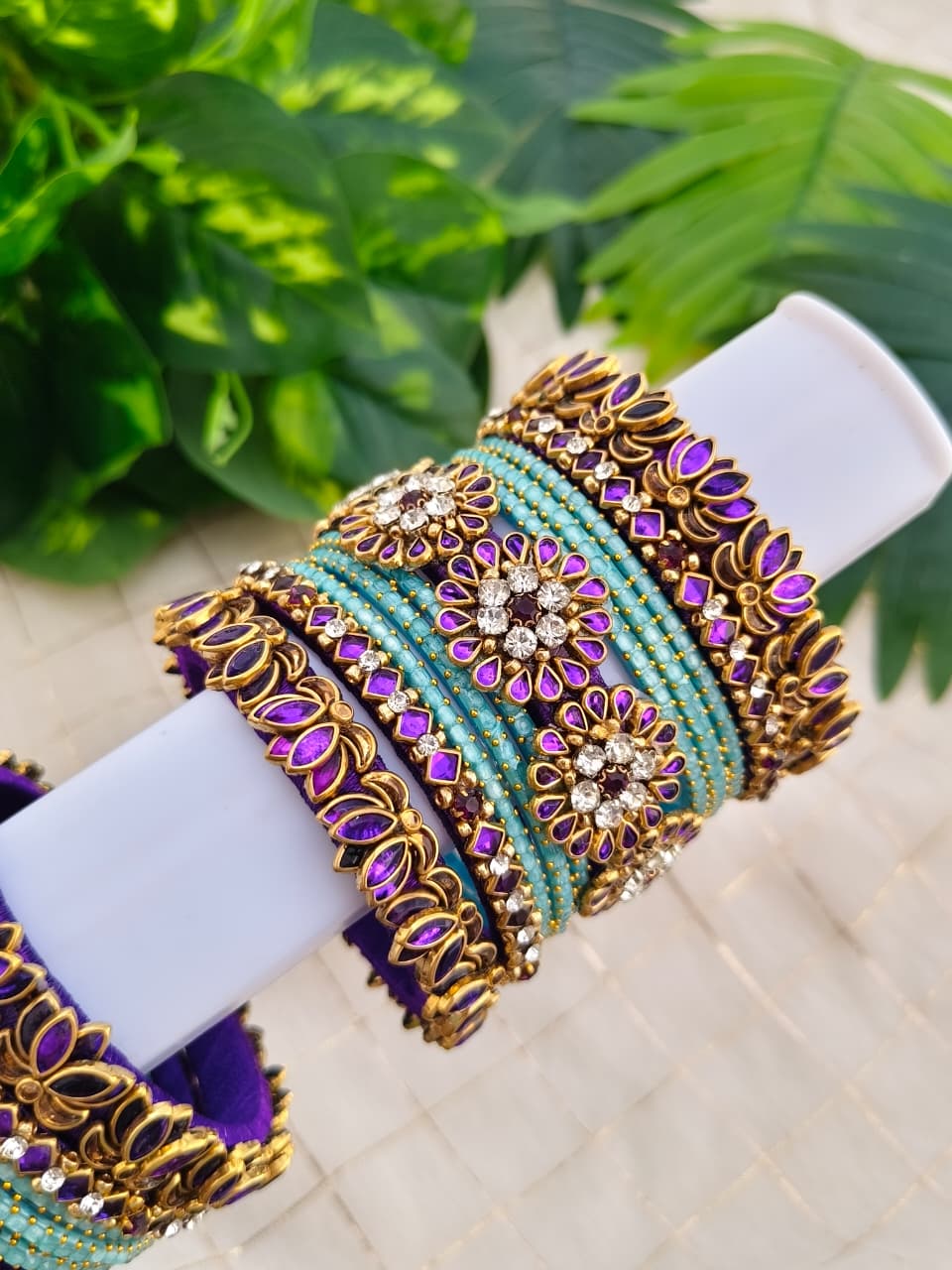 Experience the elegance of silk thread bangles adorned with glass accents, crafted exactly as shown in the picture for 2 hands . Enjoy the option to customize colors to suit your personal style. Each order is carefully handmade, with a production time of 7 to 12 days to ensure premium quality. For orders and assistance, connect with us on WhatsApp at https://wa.me/+919566639644